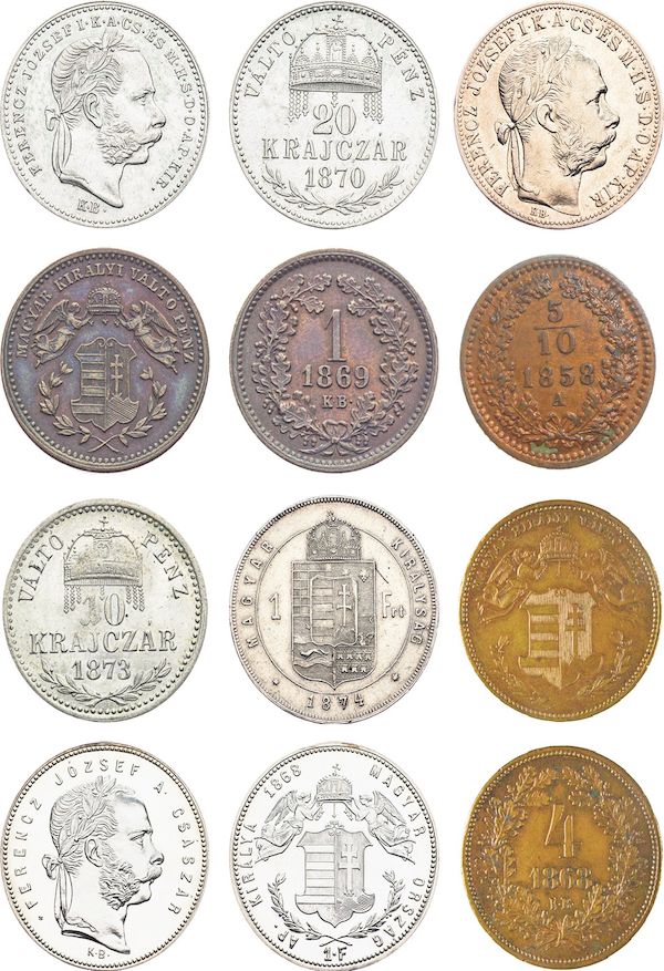 Pri menších medených minciach to bolo jednoduché, ale umelecky vkusné zobrazenie nominálu. V obehu boli okrem zlatníkov – forintov, 4, 1 a 0,5 grajciare.
